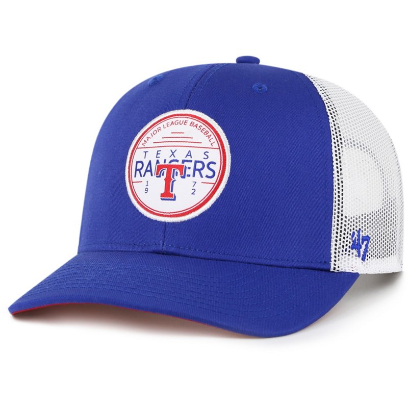 Root for your team while wearing the '47 Texas Rangers Midland Trucker Cap. Cotton twill and hard mesh construction create a hat that is durable, soft and breathable for day-long comfort. The adjustable snapback lets you personalize your fit, and the woven logo patch puts team love on stylish display. '47 Texas Rangers Midland Trucker Cap Blue - MLB Caps at Academy Sports