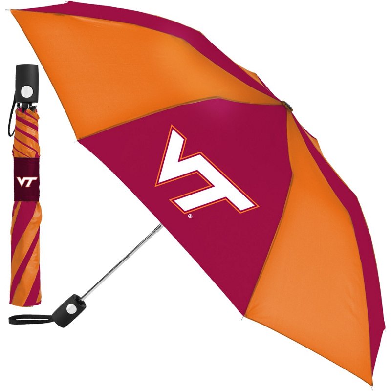 Stay dry on your way to the game with the WinCraft Virginia Tech Auto Folding Umbrella. The lightweight design allows for easy carrying, while the team graphics display your Hokies pride. WinCraft Virginia Tech Auto Folding Umbrella - NCAA Novelty at Academy Sports