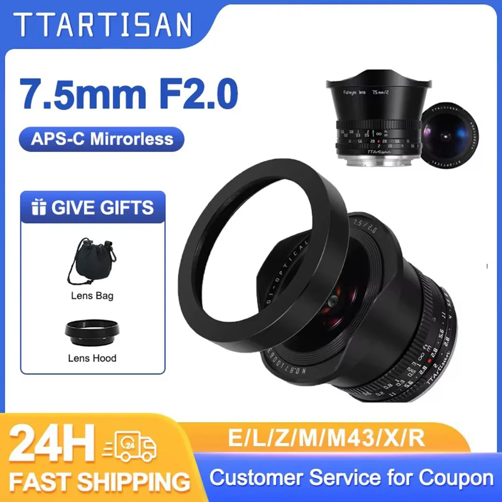 TTArtisan 7.5mm F2 APS-C Fisheye lens for canon EOR RF Sony E A6400 A7III fujifilm X-A1 X-T100 Niko…
