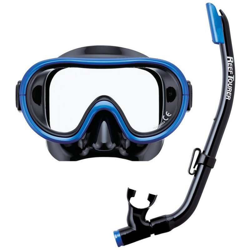 Head to the pool or the beach with the ReefTourer Youth Single-Window Mask and Snorkel Set. The mask features a durable lens made from tempered glass and offers quick-adjust clips to help ensure a proper fit. A quick clip secures the snorkel to the mask, so you can swim worry free. ReefTourer Youth Single-Window Mask and Snorkel Set Black/Dark Blue - Swim And Diving Accessories at Academy Sports