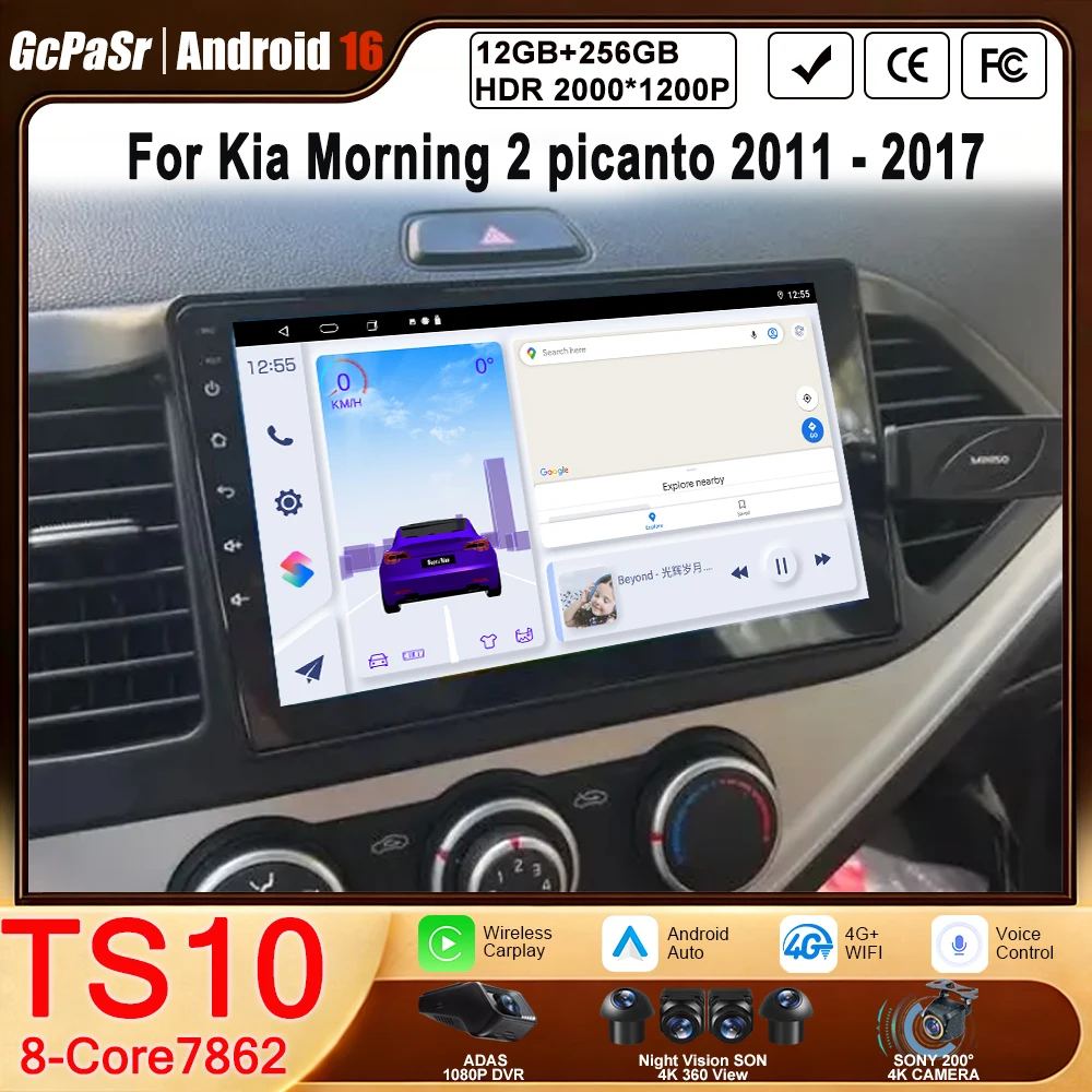 Android 15 Car Radio Stereo For Kia Morning 2 picanto 2011 - 2017 Multimedia Player Navigation Vide…