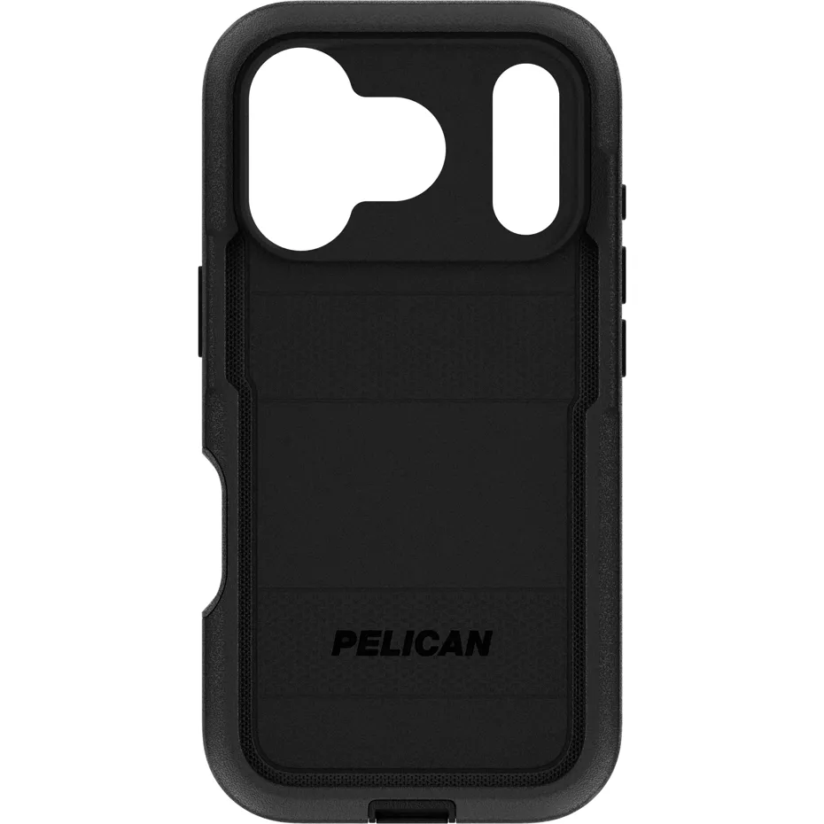 The Voyager Holster Case with MagSafe for iPhone 17 Pro offers exceptional strength, resistance, and impact protection with its dual-layer impact design, keeping your phone safe from drops of up to 24 feet¹. A non-slip edge design enhances your grip, providing added security. You can conveniently carry your phone with the included belt clip or use it as a phone stand for hands-free calls. Strong built-in magnets allow for easy MagSafe® charging and compatibility with accessories. This case features multi-layer heavy-duty construction with reinforced 360° protection and shock absorption, anti-scratch coatings, and textured sides for an enhanced grip. This product is backed by a manufacturer's lifetime warranty, ensuring its quality and durability for as long as you own your device.¹Based on independent testing. | Pelican Voyager Holster Case with MagSafe for iPhone 17 Pro - Black | Verizon