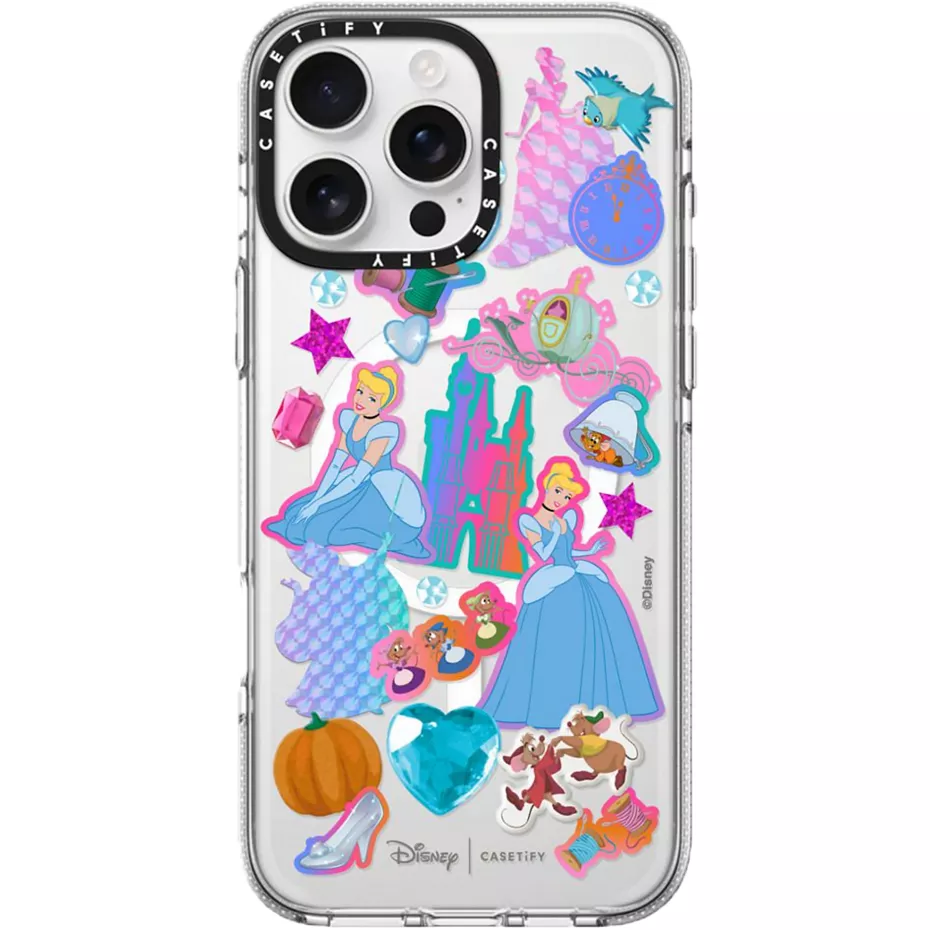 Embrace your inner Disney princess with Clear Case with MagSafe for iPhone 16 Pro Max. This collaboration blends iconic Disney magic with CASETiFY's renowned drop-defying protection. Each crystal-clear case, tougher and sleeker than ever, lets your unique style shine through while boasting 3x military-grade drop protection.¹ The UV Defender technology prevents yellowing, ensuring your case stays crystal clear. And because we believe in happily ever after for your phone and the planet, you can join the Re/CASETIFY™ program to give your old case a new life. Enjoy wireless and magnetic charging compatibility, tactile buttons, a raised bezel for screen protection, lifted camera ring for camera lens protection and easy charm attachment – all while showing off your favorite Disney Princess. Make every day magical with this enchanting collection.¹Based on independent testing. | Casetify Clear Case with MagSafe for iPhone 16 Pro Max - Cinderella Stickermania | Verizon