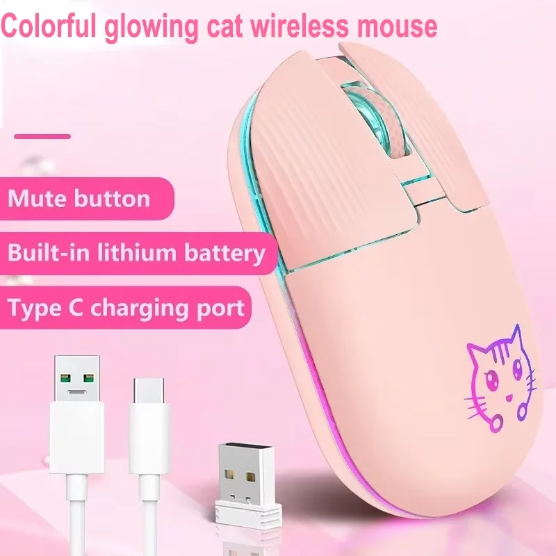 2.4G Wireless Mouse Cartoon Luna Cat Rechargeable Long Battery Life Mute Gaming Mouse Suitable for …