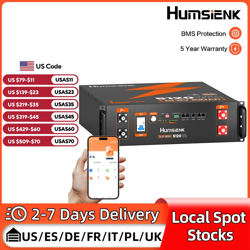 Humsienk Server Rack LiFePO4 Battery 3U Size 48V 100AH With Bluetooth 100A BMS 15000 Cycles For Inv…