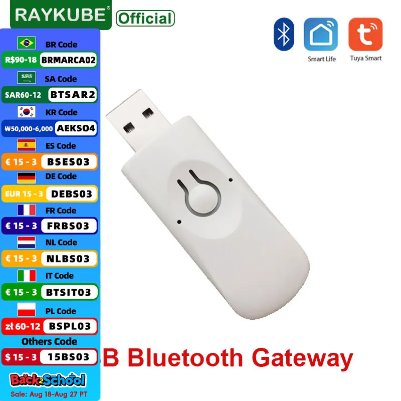 RAYKUBE B4 USB Bluetooth Gateway for Tuya APP Smart Door Lock Wifi Hub Bluetooth Smart Wireless Ada…
