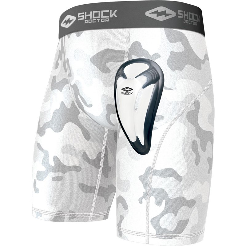 The Shock Doctor Adults' Core Compression Short with BioFlex Cup is perfect for any athlete seeking comfort and compression. The short features a Core Flex pocket design that offers enhanced comfort and range of motion., and it is constructed with supportive 4-way stretch, moisture-wicking fabrics, chafe-free flatlock seams and a vented mesh cup pocket. Shock Doctor Adults' Core Compression Short with BioFlex Cup White/Gray, Medium - Baseball/Softball Accessories at Academy Sports