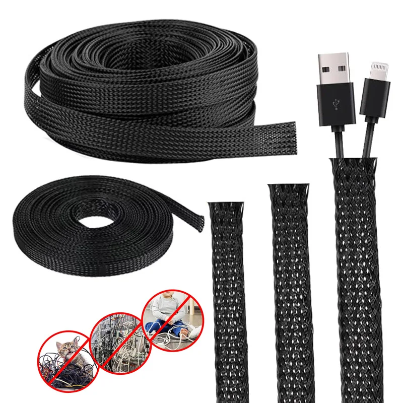 3m/9.85ft PET Expandable Braided Sleeving Flexible Wire Loom Mesh Sleeve Black for TV Audio PC Cord…