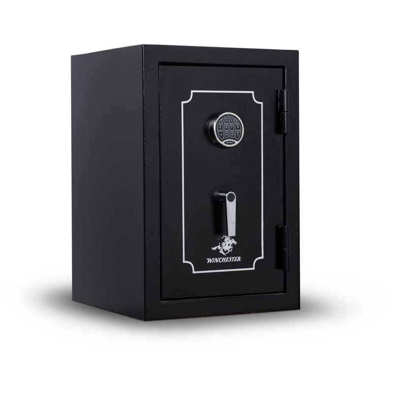 Keep important personal items safe and secure with the Winchester Home 7 Safe. The solid 14 gauge steel body affords durability, while solid steel locking bolts provide increased pry resistance. An adjustable shelving system accommodates your storage needs, and the safe is predrilled for secure floor anchoring. Winchester Home 7 Safe Black - Safes/ Cabints And Accessories at Academy Sports