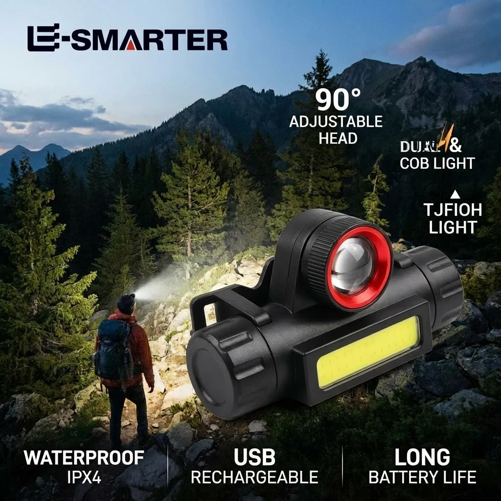 Outdoor Waterproof Camping Fishing Mining Lantern Headlight COB LED Headlamp Torch Rechargeable Hea…