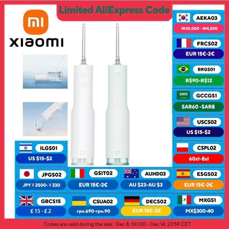 XIAOMI MIJIA Electric Oral Irrigator F300,240mL Water Tank,4 Mode Irrigator,2000time/m Frequency Pu…