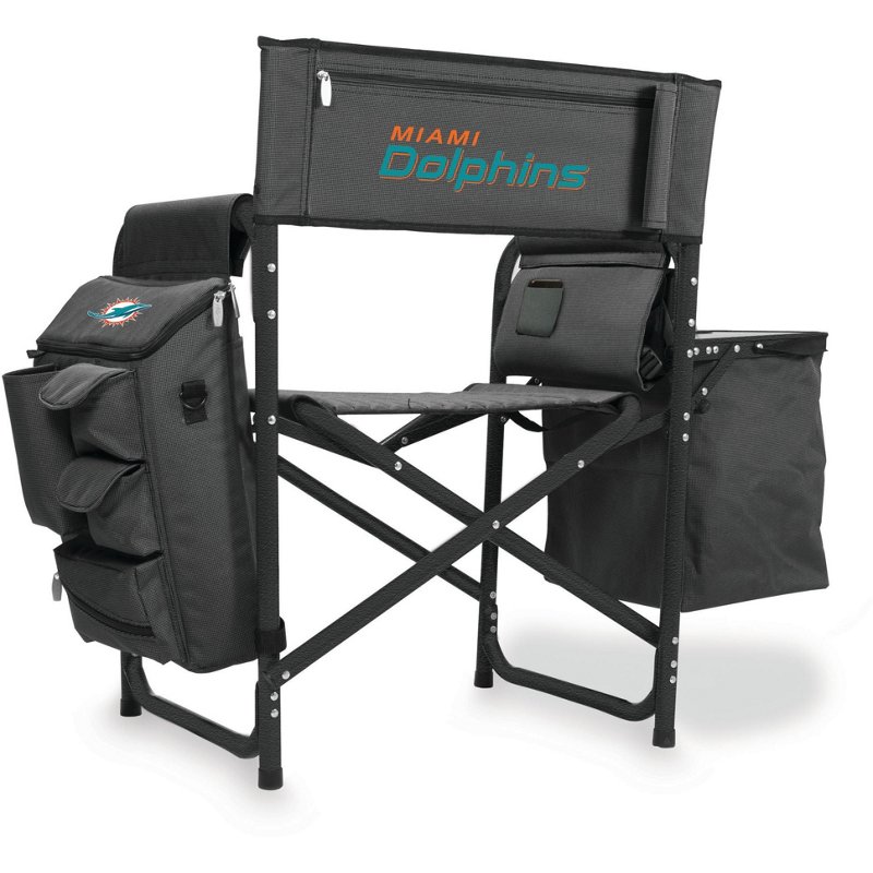 Show up prepared for your next tailgate with the Picnic Time Miami Dolphins All-in-One Fusion Camping Chair. Its padded seat and backrest keep you comfortable and are emblazoned with your team's logo. The cell phone pocket and accordion shelves offer ample storage for all your game day gear, and the folding side tray with cupholder lets you snack and sip with ease. When the party's over, the folding design and padded backpack straps enable convenient carry. Picnic Time Miami Dolphins All-in-One Fusion Camping Chair - Pro Licensed Novelty at Academy Sports