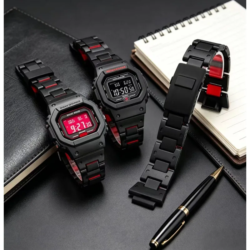For Casio strap G-SHOCK GA-2100 DW5600 DW-6900 GW-M5610/B5600 Black plastic steel watch band men's …