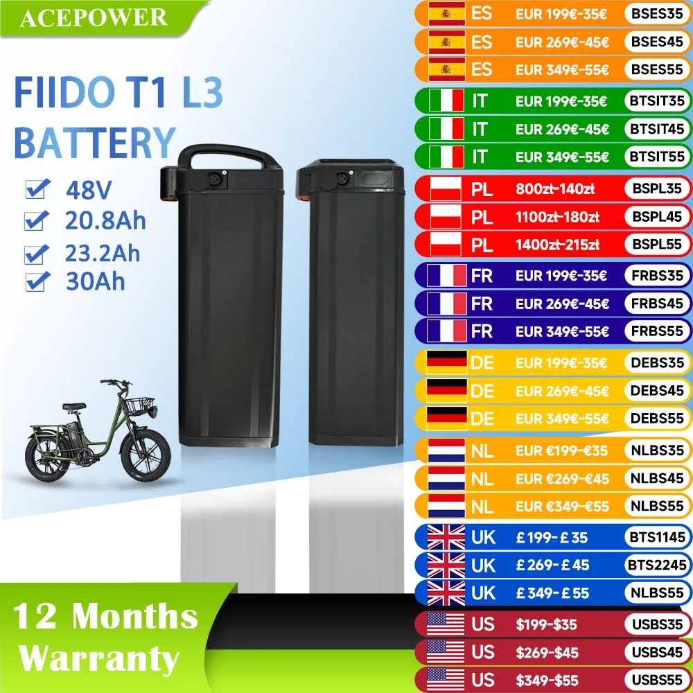 For Fiido T1 Heybike Explore Vivi Z8 Wallke H6 Engwe O14 Battery Ebike Battery 48V 20.8Ah 30Ah Fold…