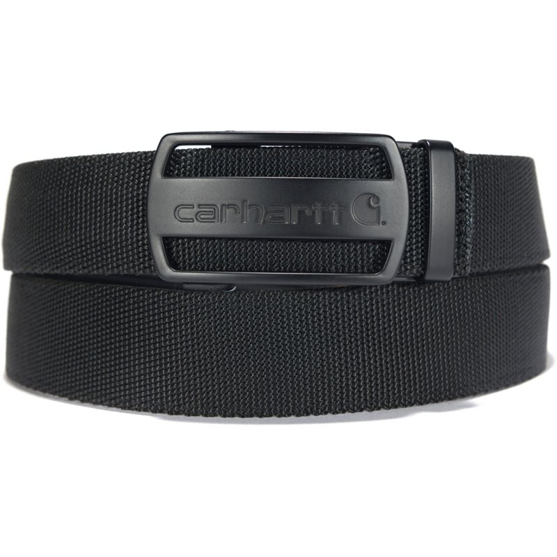 The Carhartt Menâs Industrial Nylon Adjustable Belt is your top choice for a new belt. Its nylon construction and metal buckle are long lasting and strong, and the ratchet-style adjustment system lets you easily loosen or tighten the fit. Carhartt Menâs Industrial Nylon Adjustable Belt Black - Men's Belts at Academy Sports