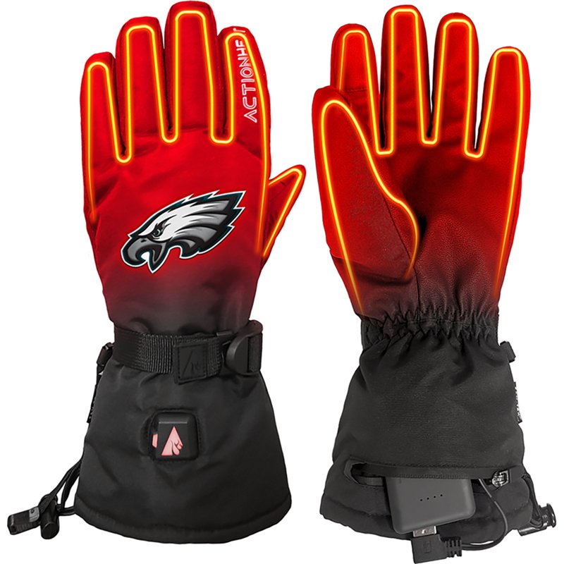 Stay warm with confidence with the ActionHeat Adults' Philadelphia Eagles 5V Heated Winter Gloves. The built-in heating system runs on battery power and lasts for hours per charge, and the Thinsulate insulation locks in heat while keeping out the chill. ActionHeat Adults' Philadelphia Eagles 5V Heated Winter Gloves Black, Medium - Pro Licensed Novelty at Academy Sports