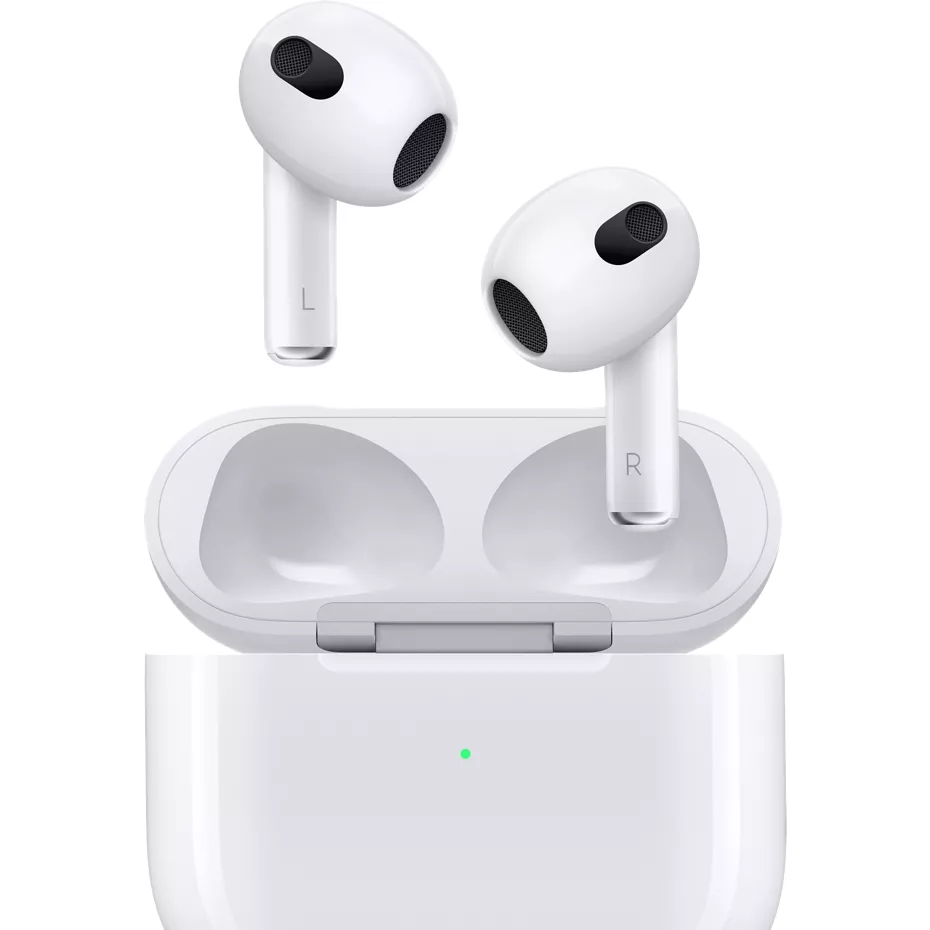 AirPods (3rd generation) feature Personalized Spatial Audio that places sound all around you,¹ as well as longer battery life.² It's sweat and water-resistant and delivers an experience that's simply magical.³ ¹ Spatial Audio works with movies, TV, and video in supported apps. iPhone with TrueDepth camera required to create personalized profile. ² Battery life varies by use and configuration. See apple.com/batteries for details. ³ AirPods (3rd generation) are sweat and water resistant for non-water sports and exercise, and they are IPX4 rated. Sweat and water resistance are not permanent conditions. 4 Siri may not be available in all languages or in all areas, and features may vary by area. Internet access required. Cellular data charges may apply. 5 Requires an iCloud account and a compatible Apple device running the latest operating system software. 6 Works with iPhone 8 or later and iPod touch (7th generation) with the latest version of iOS; and 12.9-inch iPad Pro (2nd generation or later), 11-inch iPad Pro, 10.5-inch iPad Pro, iPad (5th generation or later), iPad Air (3rd generation or later), and iPad mini (5th generation or later) with the latest version of iPadOS. | Apple AirPods (3rd generation) with Lightning Charging Case - White | Verizon
