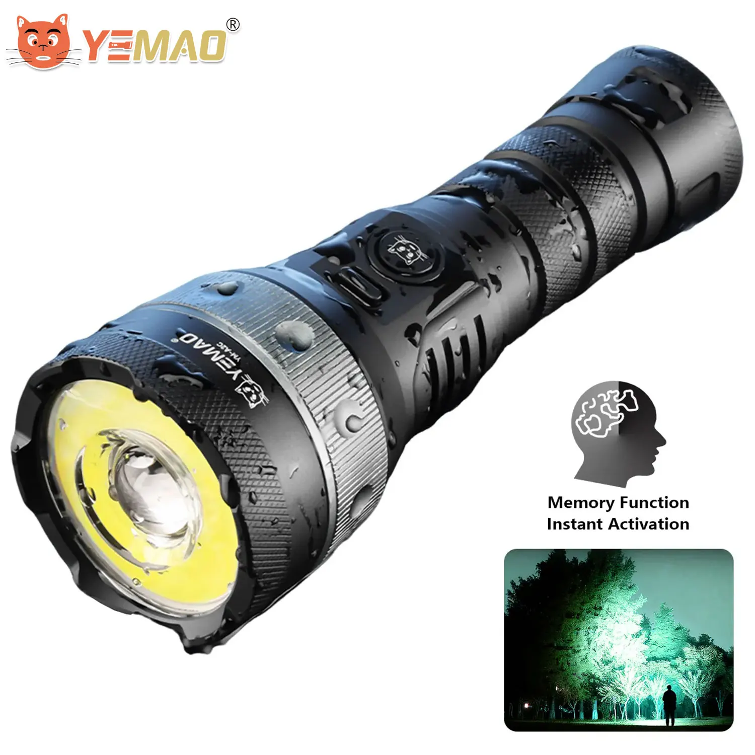 YEMAO A2C 21700 Rechargeable Tactical Flashlight 6160LM LED High beam floodlight switching Outdoor …