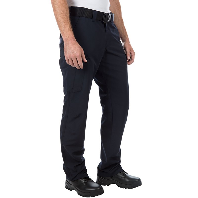 Constructed from 80% polyester/20% cotton Flex-Tac ripstop fabric with a Teflon finish, the Fast-Tac Cargo Pant is built for durability and water resistance. Gusseted construction and knee articulation provide enhanced mobility, while cargo pockets offer ample storage for tactical gear. These pants are designed for those who need reliable, functional clothing in demanding environments. 5.11 Tactical Men's Fast-Tac Cargo Pant Dark Navy Blue, 42" - Men's Outdoor Pants at Academy Sports