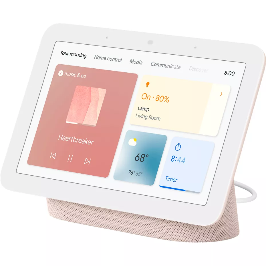 Meet the second-gen Nest Hub from Google,4 the center of your helpful home. With Nest Hub in the kitchen, make dinner and watch Netflix or YouTube.¹ Ask Google to show you recipes, and follow them hands-free. Play music on the enhanced speaker with YouTube Music, Spotify, and more. In the living room, Nest Hub is the one place to control your compatible lights, TVs, and other smart devices with a tap or your voice. On your bedside table, Nest Hub helps you wind down at night with soothing sounds and wake up to a Sunrise Alarm. It can even help you get a better night's sleep with Sleep Sensing.5 Coordinate your family. Nest Hub is full of help for your busy home. See your calendar and create reminders and to-dos. Just say, "Hey Google, broadcast it's dinnertime" and everyone will hear it on your Nest speakers and displays around the house. Ask Google about the weather or almost anything. Leave quick messages you can see at a glance. And make voice calls with Google Duo.6 A better way to wake up and wind down. With Nest Hub on your bedside table, you can fall asleep and wake up easier. The display dims to make your bedroom more sleep-friendly. From the "Your evening" page, set your alarm, control your compatible lights and other connected devices, and play soothing sounds to help you drift off. Nest Hub's Sunrise Alarm wakes you up gently, and with Motion Sense, just wave your hand to snooze. Nest Hub respects your privacy. At any time, you can turn off the mic with the mic switch. And easily clear your Google Assistant history whenever you want. Thoughtfully designed, inside and out. Nest Hub's subtle design fits any room. The display adjusts to ambient room light, so it's not too bright or too dim. It shows your best shots from Google Photos automatically, so your favorites are always in the background. And it's made with the environment in mind 54% of its plastic part material is made with recycled content. ¹Subscription services may be required for certain content. ²Compatible smart devices required. Google learns your most common music, smart home and productivity commands and responds faster over time. US only feature. ³Compatible smart devices required. 4Google Nest Hub requires a Wi-Fi network, a nearby electrical outlet and a compatible (Android, iOS) mobile device. Minimum OS requirements are available at g. co/home/req. iOS is a trademark of Cisco and is used under license. 5Sleep Sensing requires a subscription (sold separately). Sleep Sensing features are subject to your permissions and settings. They use motion, sound, and other device and sensor data to work and require placing the device close to the bed and calibrating the device for your sleeping position. Google Assistant, Google Fit and other Google apps may be required for full functionality. Google Assistant requires a Google Account. Sleep Sensing is not intended to diagnose, cure, mitigate, prevent or treat any disease or condition. Consult your healthcare professional if you have questions about your health. Device placement and nearby people, pets, or noises can cause inaccurate readings. 6To make calls with Duo, Google Duo account required for you and call recipients. Personalized results for up to 6 users require additional enrollment and setup. | Google Nest Hub (2nd Gen) - Sand | Verizon
