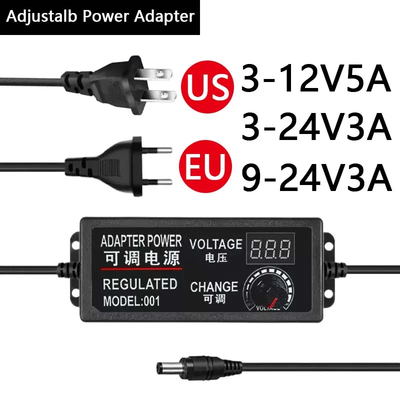 Adapter Adjustable 3-12V5A 3-24V3A 9-24V3A Power Supply Display Screen Regulated Knob Dc 5.5*2.5mm …
