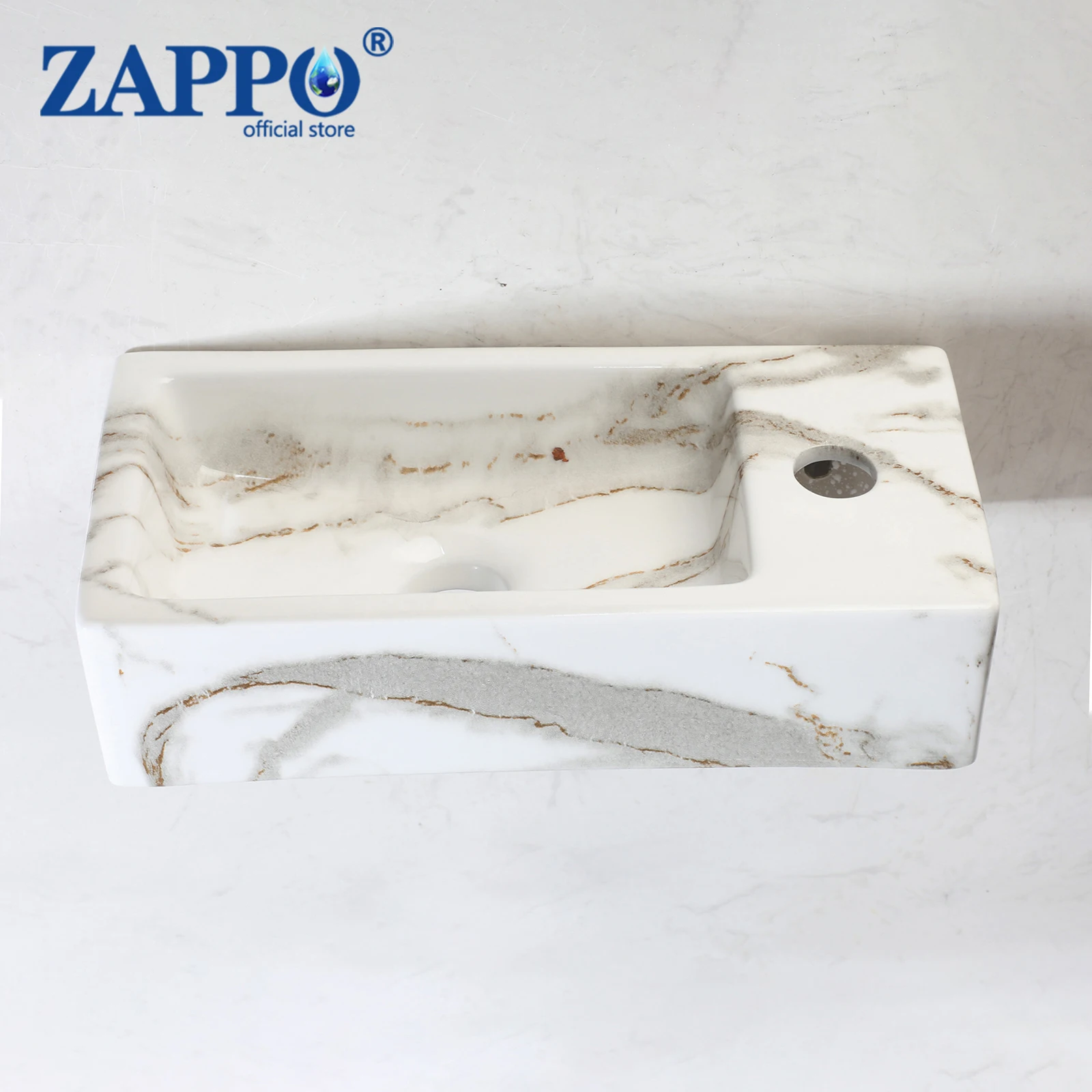 ZAPPO Small Bathroom Sink Marble Wall Hung Basin Sink Rectangle Ceramic Wash Basin Bathroom Vessel …