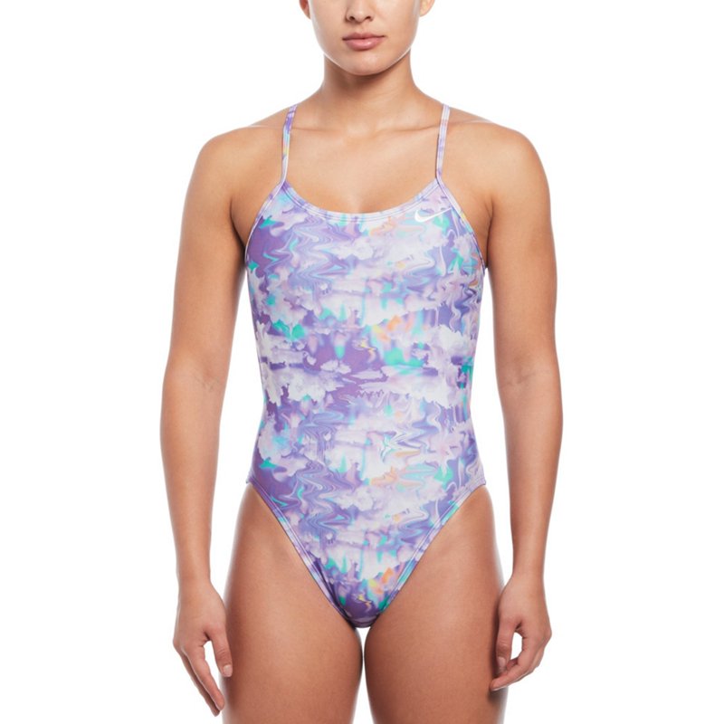 Show off your boldness with the Nike Women's Cutout One Piece Swimsuit. The 100% polyester construction features HydraStrong technology to last all season long. The cutout design and high legs allow full mobility, while the liner supports modesty. Bold colors and patterns create a stylish look. Nike Women's Cutout One Piece Swimsuit Lilac Bloom, 38 - Women's Competitive Swim at Academy Sports