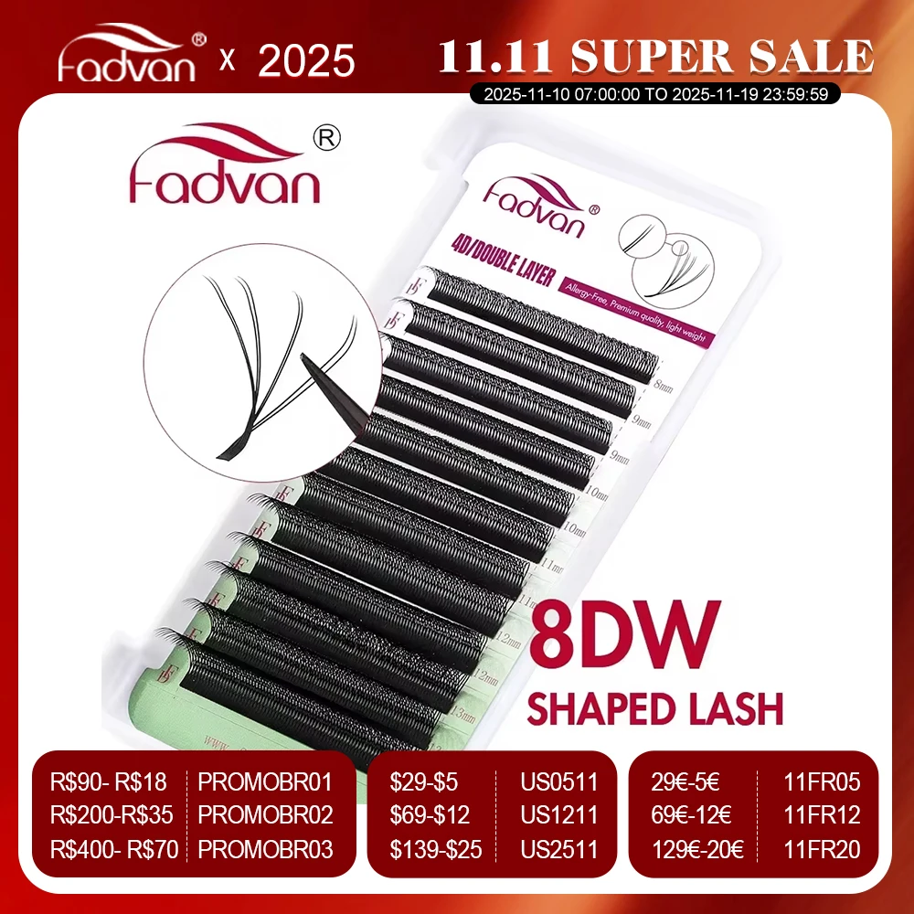 Fadvan 8D W Shape Lashes Extension Two Tips 4D Premade Fan Eyelash Faux Mink Makeup Supplies