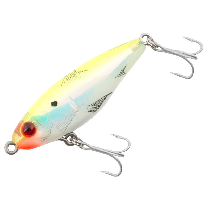 The MirrOlure® MirrOdine® Mini 2-1/4" Suspending Twitchbait features a wide body profile and a realistic baitfish pattern that draws the attention of trout, redfish, snook, striped bass and tarpon. For use in saltwater. 0" - 24" depth. 2-1/4" long. Hook size: 6. MirrOlure MirrOdine Mini 2-1/4" Suspending Twitchbait Chartreuse - Salt Water Hard Baits at Academy Sports