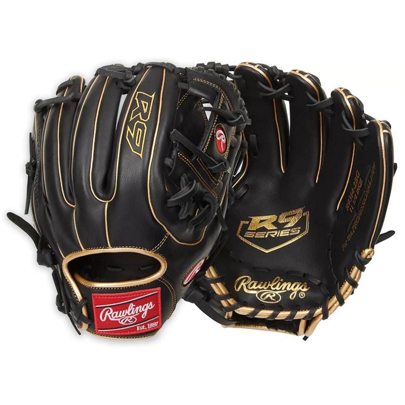 Step onto the diamond ready to show off your skills with the Rawlings R9 Series I-web Baseball Glove. The soft tumbled full grain leather construction promotes easier break in and durability. The reinforced palm pads supply extra protection, while the Pro patterns used in the Majors create a bold, sporty look. Rawlings R9 Series I-web Baseball Glove Black - Sball/Bball Glove And Mitt at Academy Sports