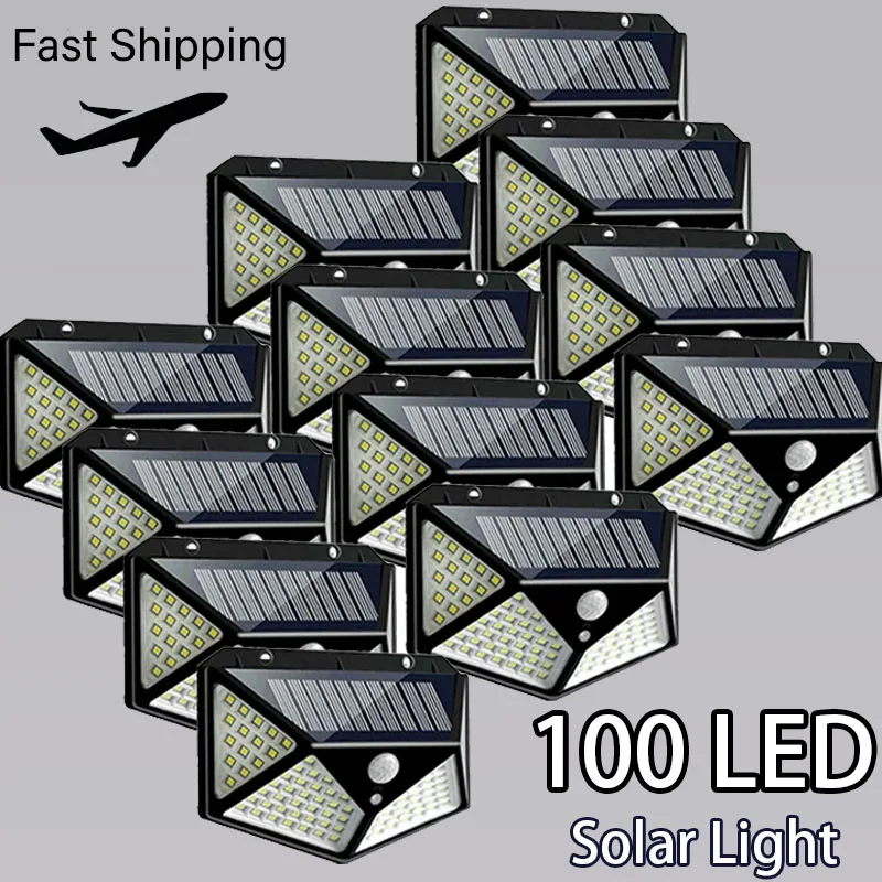 100 LED Solar Wall Lights Outdoor Solar PIR Motion Sensor Lamp Waterproof Solar Street Light for Ga…