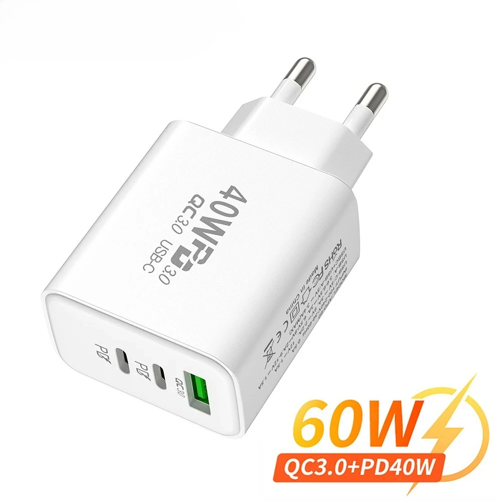 60W USB Type C Charger 3 Ports PD QC3.0 Fast Charging Wall Charger Adapter For iPhone Xiaomi Samsun…