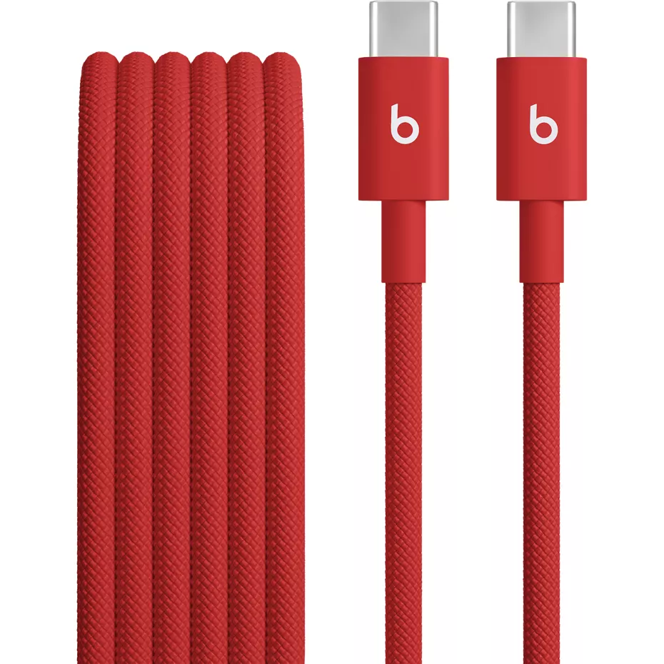 Say goodbye to tangled messes with the USB-C to USB-C Woven Cables. This 5 feet cable,¹ boasts a durable, tangle-free woven design that's built to last. Beats' commitment to quality is evident in the thousands of hours of testing the cables undergo, ensuring they can withstand daily wear and tear. Compatible with a wide range of Apple and Android USB-C devices, this versatile cable is ideal for charging, syncing, audio, CarPlay, and data transfer. Experience fast charging up to 60 watts, seamless audio streaming, and lossless audio playback while charging your USB-C compatible Beats headphones or speakers. Pair it with a USB-C power adapter ² and conveniently charge your devices from a wall outlet. The braided design and reinforced construction ensure a long lifespan, making this cable a valuable addition to your tech arsenal.¹Precise length is 4 feet 11 inches. USB-C power adapter not included. | Beats USB-C to USB-C Woven Cable (1.5 m) - Rapid Red | Verizon