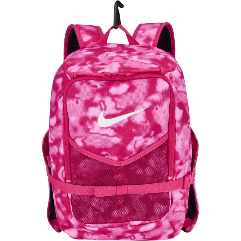 Keep your baseball gear organized in one convenient place with the Nike Youth Diamond Select Bat Backpack. The main compartment has enough room to store your mitt, cleats, balls and more, while the side sleeves allow you to carry two bats at once. The outer mesh pocket keeps snacks and other practice essentials close at hand, and the padded shoulder straps offer an adjustable and comfortable fit. Nike Youth Diamond Select Bat Backpack Perfect Pin/Kwhite - Baseball/Softball Accessories at Academy Sports