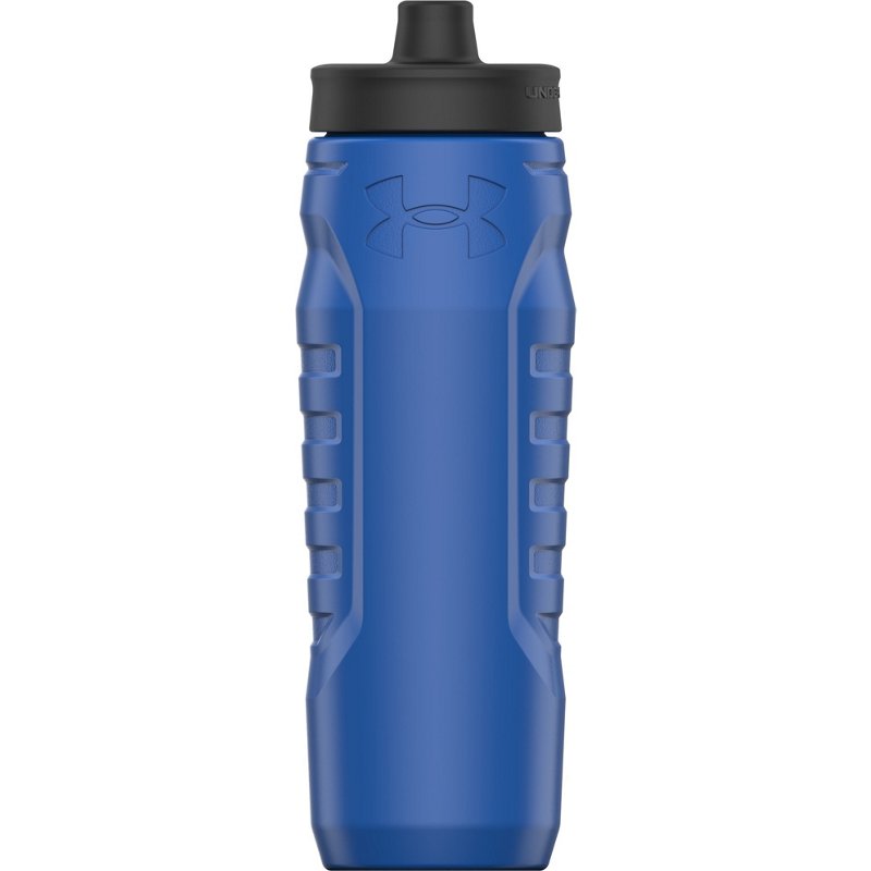 Stay hydrated with the Under Armour 32 oz Sideline Squeeze Water Bottle. The 1-handed operation offers ease-of-use, while the quick-shot lid and 1-way valve ensure fast hydration. The bottle is marked with ounces and milliliters for easy measuring. Under Armour 32 oz Sideline Squeeze Water Bottle Blue - Football Equipment at Academy Sports