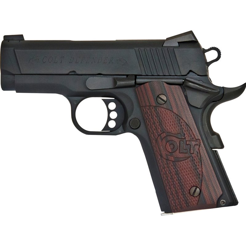 Compact and easy to carry, the Colt Defender 1911 .45 ACP Pistol boasts a lightweight aluminum-alloy frame with a matte Cerakote® finish. The pistol also features a 3-inch stainless-steel, polished barrel, a blued, carbon-steel slide and a cherry G10 grip. Novak night front sight. Novak low-mount carry rear sight. Made in USA. Colt Defender 1911 .45 ACP Pistol - Handgun Semiauto Center Fire at Academy Sports