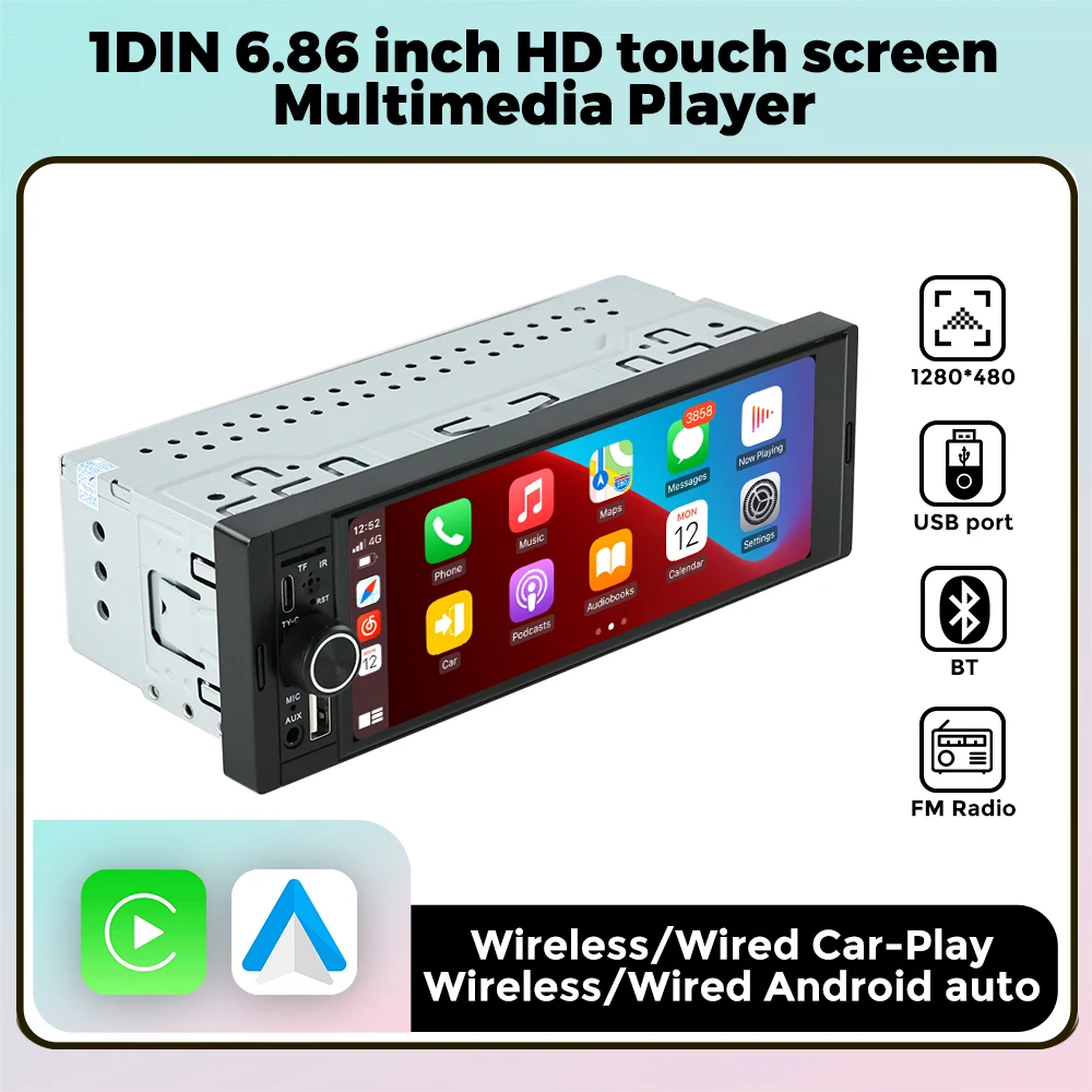 NaviFly 6.86" Touch Screen 1 Din Car Stereo Multimedia Player Wireless CarPlay Android Auto Univers…