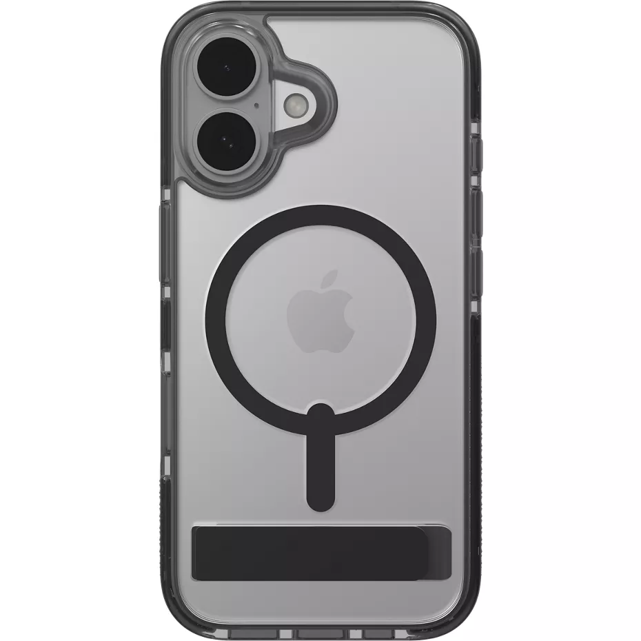 Protect your phone from drops, bumps and dings with the Santa Cruz Snap Case with MagSafe for iPhone 16. Made in part with up to 70% post-consumer recycled content, this sturdy clear case provides up to 13 feet of drop protection.1 The slim, lightweight design features color accents injected into the borders, camera ring and snap magnet for a fun vibe. Antimicrobial treatment protects the case from dirt and germs.2 The integrated kickstand makes it easy to watch videos hands free. And, it's both MagSafe and wireless charging compatible, so you don't have to remove your case to charge your phone. 1 Based on independent testing. 2 Contains an antimicrobial agent with properties built in to protect your case by inhibiting the growth of odor-causing bacteria and guarding against degradation from microorganisms. | Zagg Santa Cruz Snap Case with MagSafe for iPhone 16 - Black | Verizon