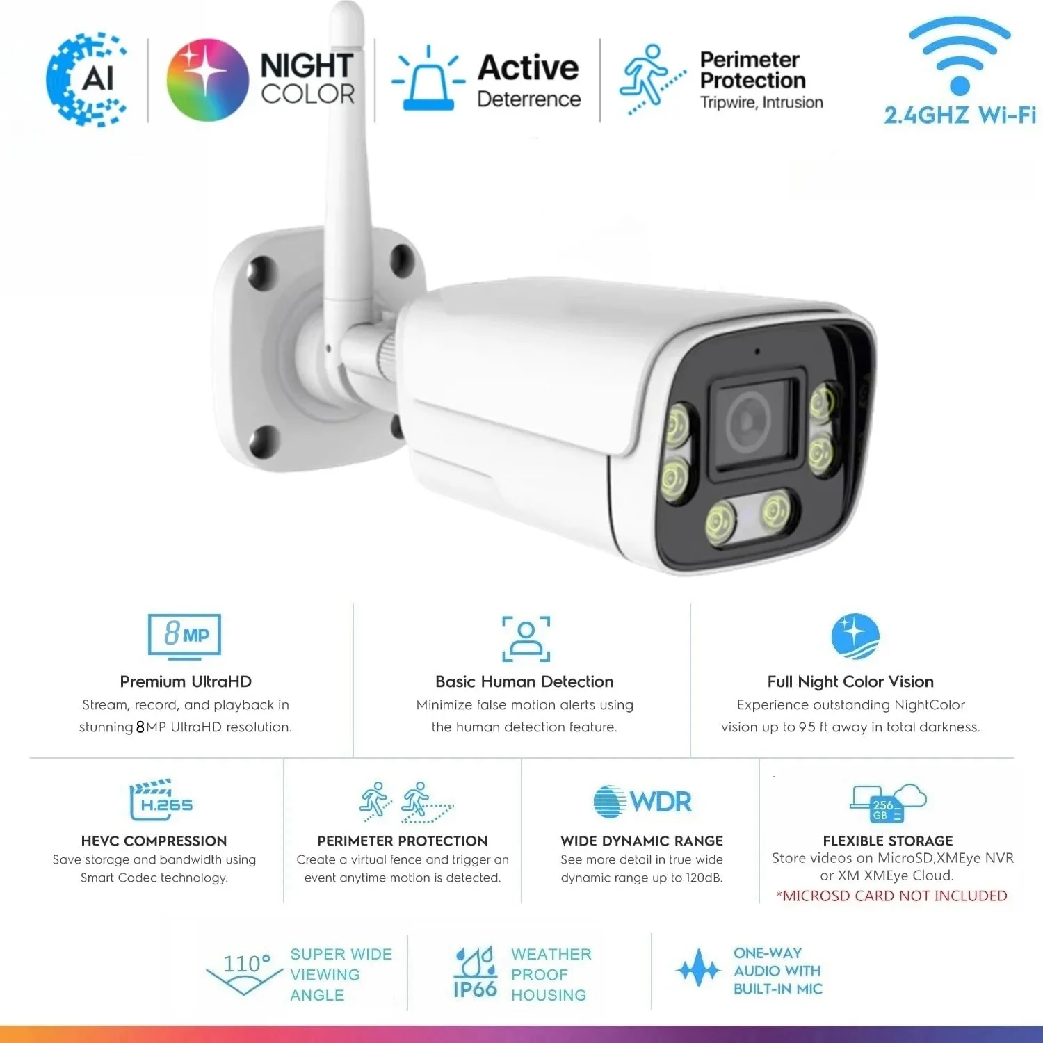 XM 3MP 5MP 8MP Surveillance WiFi IP Camera H.265 Two-way Audio Human Detected P2P Outdoor Metal CCT…