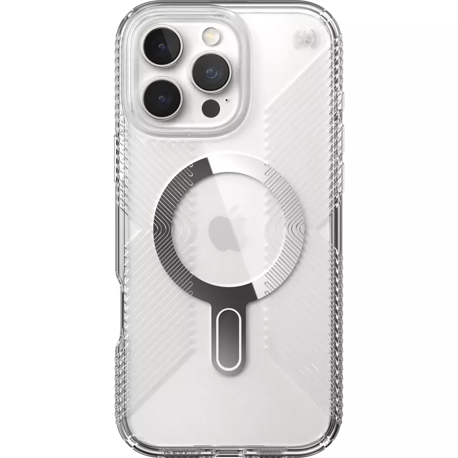 Protect your phone from bumps and dings with the Presidio Perfect Clear Grip Case with MagSafe for iPhone 16 Pro Max. Made in part from up to 50% recycled materials, this translucent case features Speck's Perfect-Clear coating that prevents yellowing and discoloration so your case stays clear. Clear Impact technology and raised-bezel screen protection shields against drops up to 13 feet.¹ Tactile buttons provide a satisfying click when used. No-slip inverted grips make it easy to keep hold of your phone while on the go. The ClickLock MagSafe enhancer allows for ClickLock technology to lock your MagSafe accessories into place with a satisfying click. And, it's both MagSafe and wireless charging compatible, so you don't have to remove your case to charge your phone. Antimicrobial protection. Keep your case free of dirt and germs. Microban antimicrobial protection reduces bacteria growth by up to 99%. ¹ Based on independent testing. | Speck Presidio Perfect Clear Grip Case with MagSafe for iPhone 16 Pro Max - Clear | Verizon