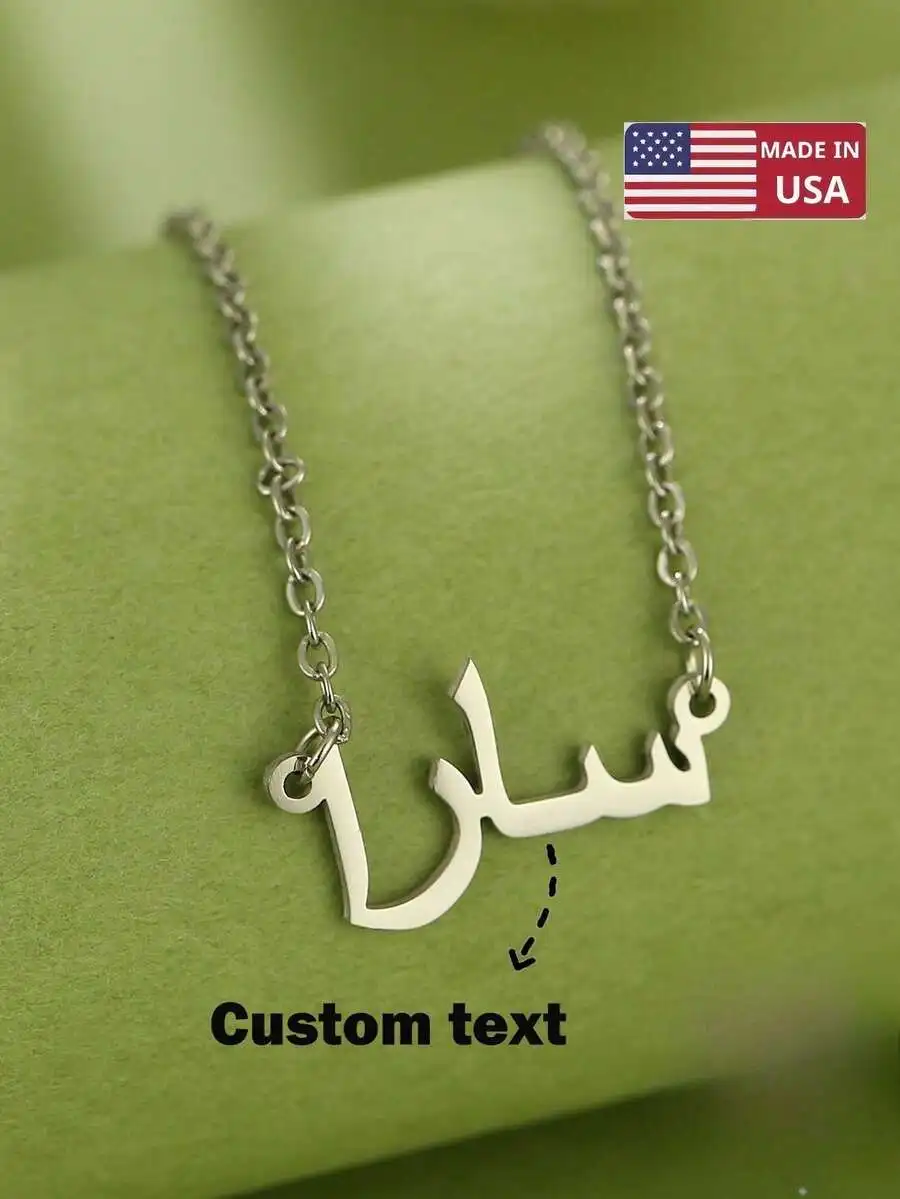 Custom Arabic Name Necklace in Stainless Steel - Personalized Pendant for Women or Men