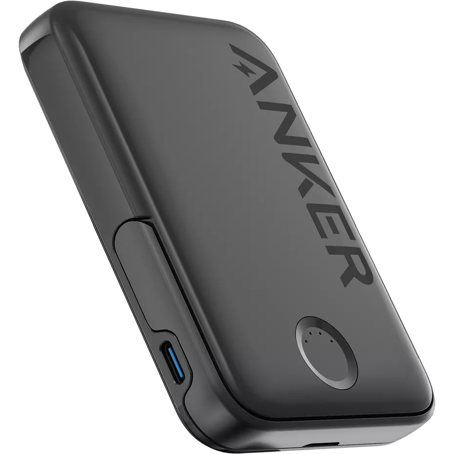 Say goodbye to the chaos of tangled cables and embrace the future of effortless charging with the advanced magnetic wireless 322 MagGo 5k mAh Battery with Stand. Featuring a robust magnetic grip with a force of up to 10N, it ensures a secure connection that surpasses the original MagSafe, so you can focus on what you love—whether it's gaming, streaming videos, or multitasking on the go. Its ultra-compact, credit-card sized design makes it an ideal companion for your busy lifestyle. But this isn't just any power bank; it doubles as a wireless charger, providing versatile, cable-free recharging for your devices. Experience the convenience and functionality with the 322 MagGo 5k mAh Battery with Stand—where cutting-edge technology meets everyday ease. | Anker 322 MagGo 5k mAh Battery with Stand - Black | Verizon