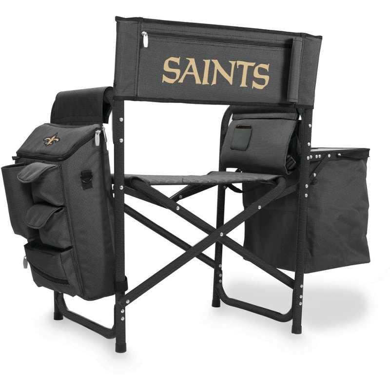 Show up prepared for your next tailgate with the Picnic Time New Orleans Saints All-in-One Fusion Camping Chair. Its padded seat and backrest keep you comfortable and are emblazoned with your team's logo. The cell phone pocket and accordion shelves offer ample storage for all your game day gear, and the folding side tray with cupholder lets you snack and sip with ease. When the party's over, the folding design and padded backpack straps enable convenient carry. Picnic Time New Orleans Saints All-in-One Fusion Camping Chair - Pro Licensed Novelty at Academy Sports