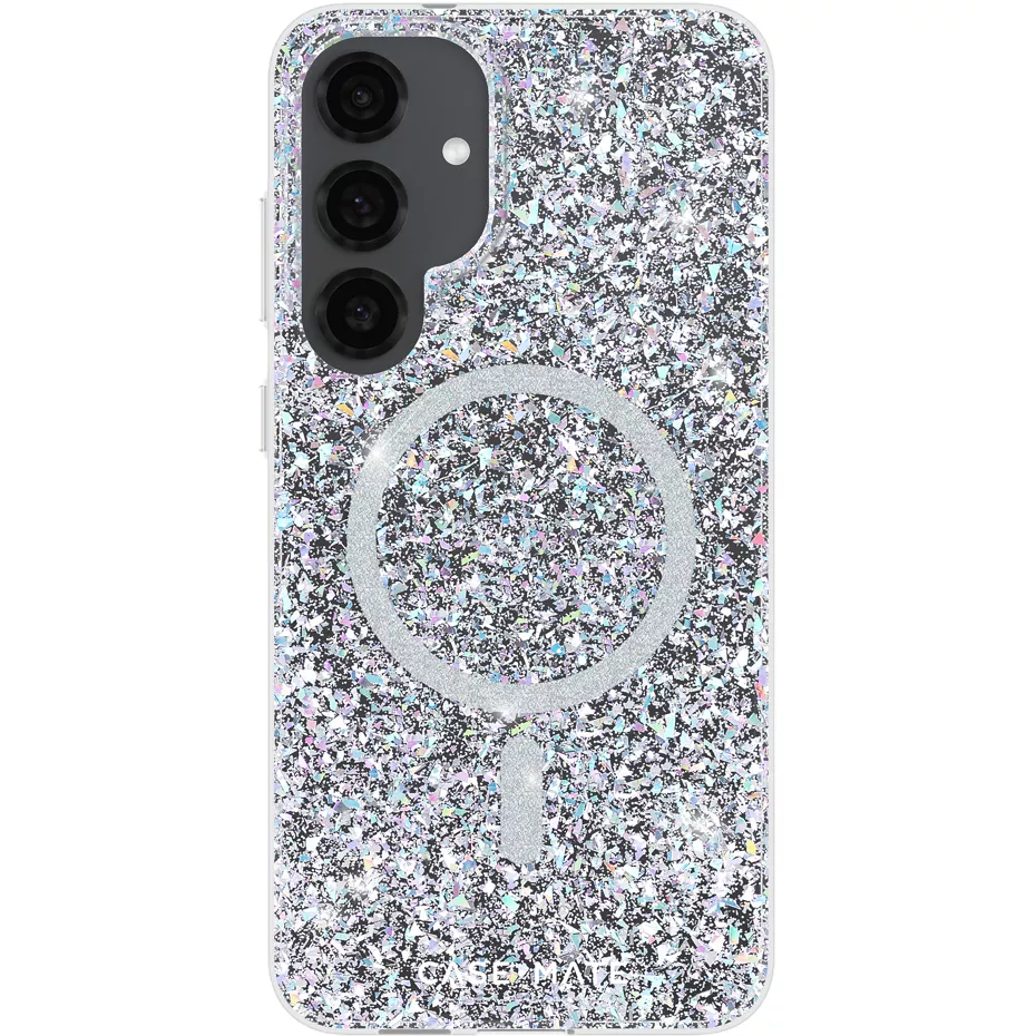 Get ready to shine with the Twinkle Case with Magnet for Galaxy S25 Plus. This vibrant case boasts a dazzling iridescent finish that sparkles with every move, capturing the light like a disco ball. With powerful built-in magnets, accessorizing is fun and charging is a breeze. Your phone will be well-protected against drops of up to 12 feet.¹ The anti-scratch coating ensures it stays looking fresh and the UV protection keeps it clear. The eco-friendly design incorporates recycled materials, and you can rest easy knowing it's backed by a manufacturer's lifetime warranty. Based on independent testing. | Case-Mate Twinkle Case with Magnet for Galaxy S25+ - Disco | Verizon