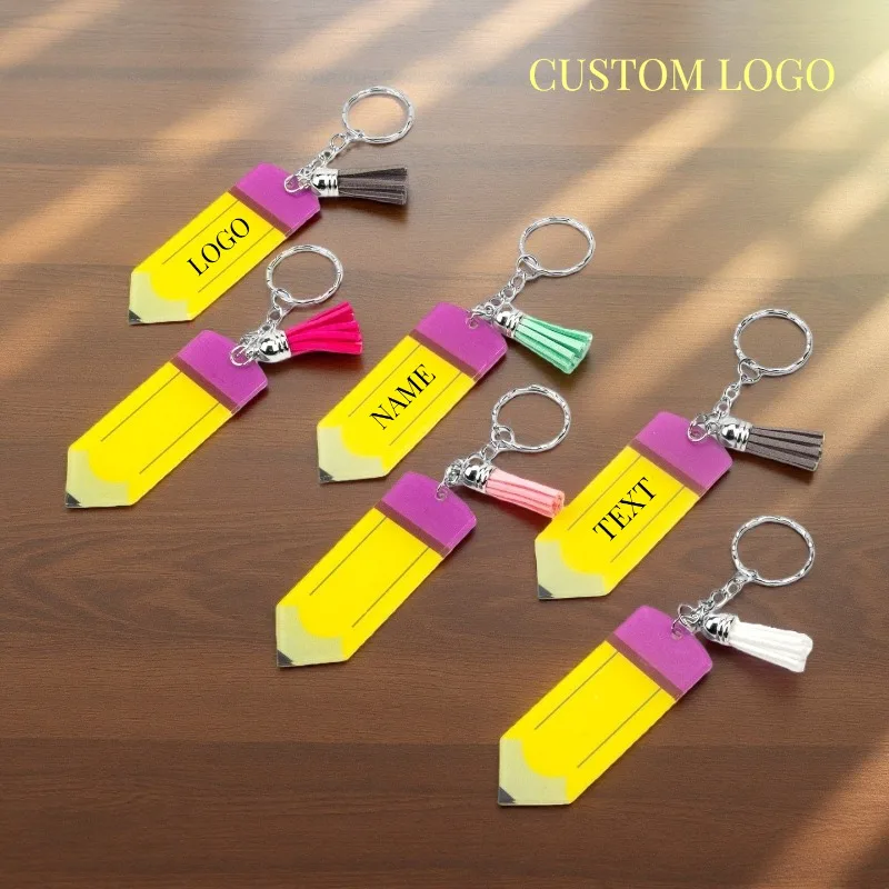 Personalized Hot Pen Acrylic Keychain Pencil Tassels Metal Keyring Custom Logo Name Engraved Engrav…