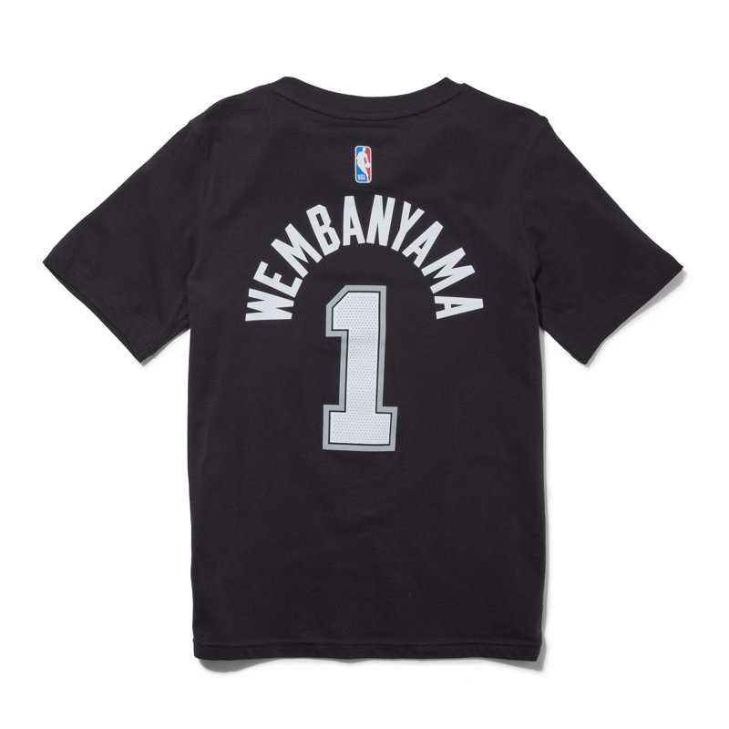 Shoot around and practice just like Spurs player Victor Wembanyama in the Nike Boys' San Antonio Spurs Victor Wembanyama 1 N&N Icon T-shirt. The 100% cotton fabric flexes with your movements, and the team player design expresses your fandom. Nike Boys' San Antonio Spurs Victor Wembanyama 1 N&N Icon T-Shirt Black, 8 Youth - NBA Youth at Academy Sports