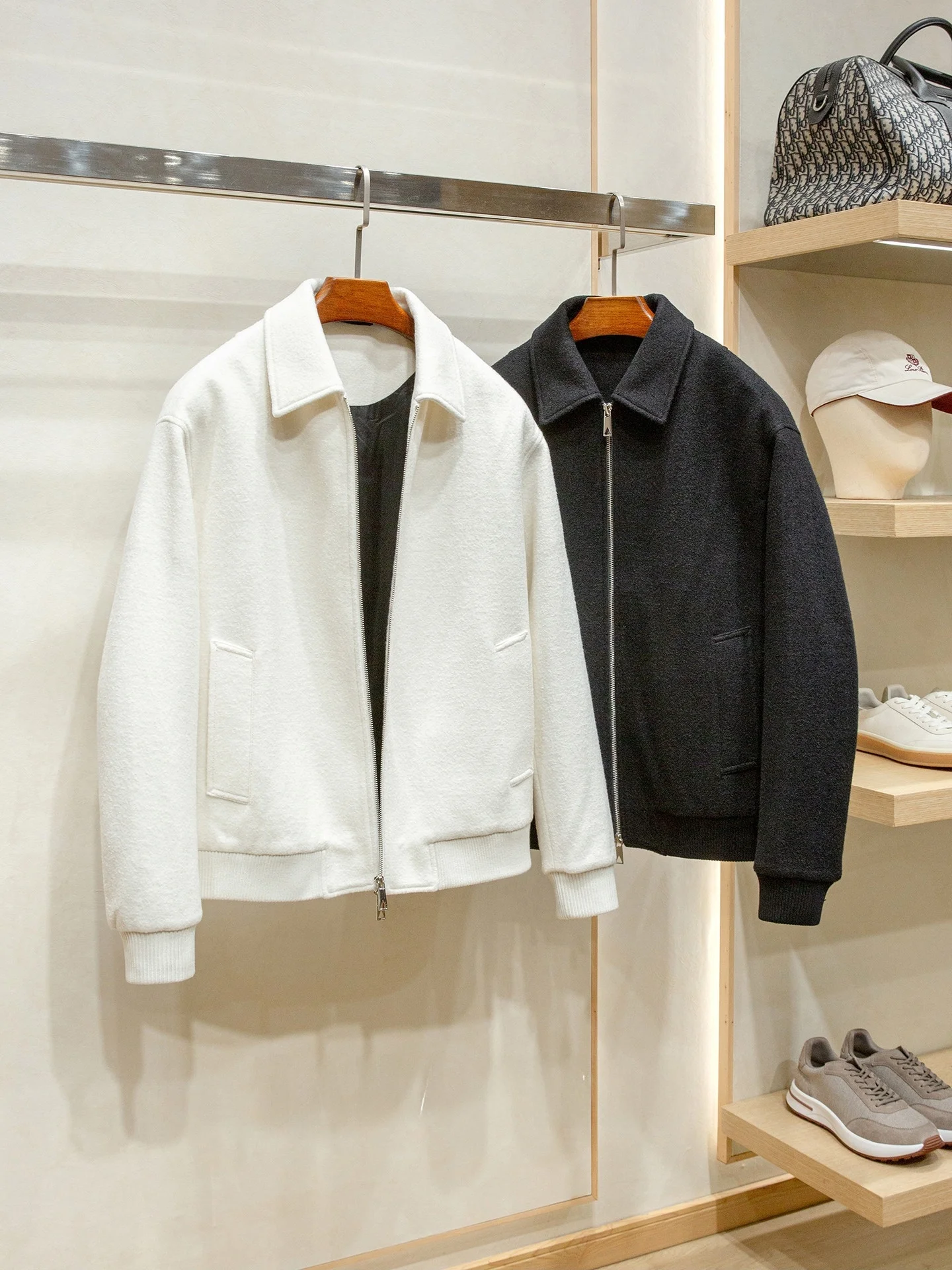 LAMA PIERO Men's Woolen Trench Coat B Version Simple Sli Warmth Goose down Jaet Long Sve Zipper Clo…