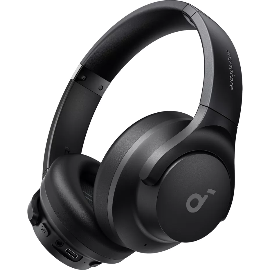 Immerse yourself in your favorite tunes with the Soundcore by Anker Q20i Wireless Noise Cancelling Headphones. Connect simultaneously to up to 2 devices with Bluetooth® 5.0 and easily switch between them. The Soundcore app allows you to tailor your sound using the customizable EQ with 22 presets and easily switch between 3 modes: ANC, Normal and Transparency. And, it's TCO certified for better sustainability. Hybrid Active Noise Cancelling. Focus on your music while on the go. The 2 internal and 2 external mics work in tandem to detect external noise and reduce it by up to 90%. And, when you need to be aware of your surroundings you can swap to Transparency Mode. Immersive, detailed audio. These headphones have oversized, 40mm dynamic drivers for detailed sound and BassUp technology for a thumping bass. And, it's compatible with Hi-Res certified audio with the included AUX cable. Long lasting battery. With ANC, you can get up to 40 hours of listening time while on the go.¹ And, if you need a quick charge, you can fast-charge for 5 minutes for up to 4 hours of listening time.¹ ¹ Battery life and charge cycles vary with use, settings, and other factors; actual results will vary. | Anker Q20i Wireless Noise Cancelling Headphones - Black | Verizon