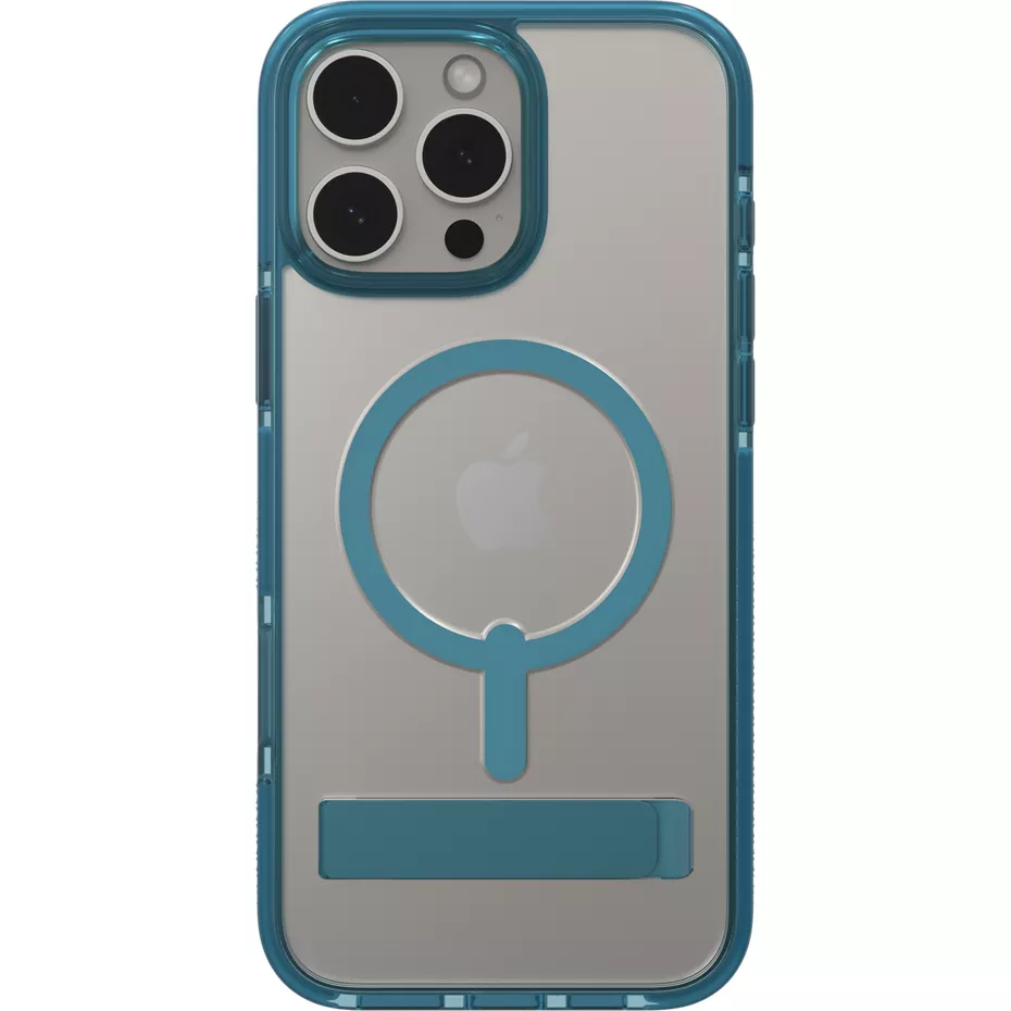 Protect your phone from drops, bumps and dings with the Santa Cruz Snap Case with MagSafe for iPhone 16 Pro. Made in part with up to 70% post-consumer recycled content, this sturdy clear case provides up to 13 feet of drop protection.1 The slim, lightweight design features color accents injected into the borders, camera ring and snap magnet for a fun vibe. Antimicrobial treatment protects the case from dirt and germs.2 The integrated kickstand makes it easy to watch videos hands free. And, it's both MagSafe and wireless charging compatible, so you don't have to remove your case to charge your phone. 1 Based on independent testing. 2 Contains an antimicrobial agent with properties built in to protect your case by inhibiting the growth of odor-causing bacteria and guarding against degradation from microorganisms. | Zagg Santa Cruz Snap Case with MagSafe for iPhone 16 Pro - Blue | Verizon
