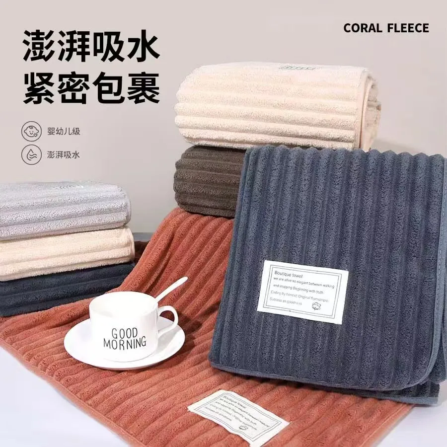 270g plain striped coral fleece bath towel, non-cotton, A-class bath towel, extra large, super soft…